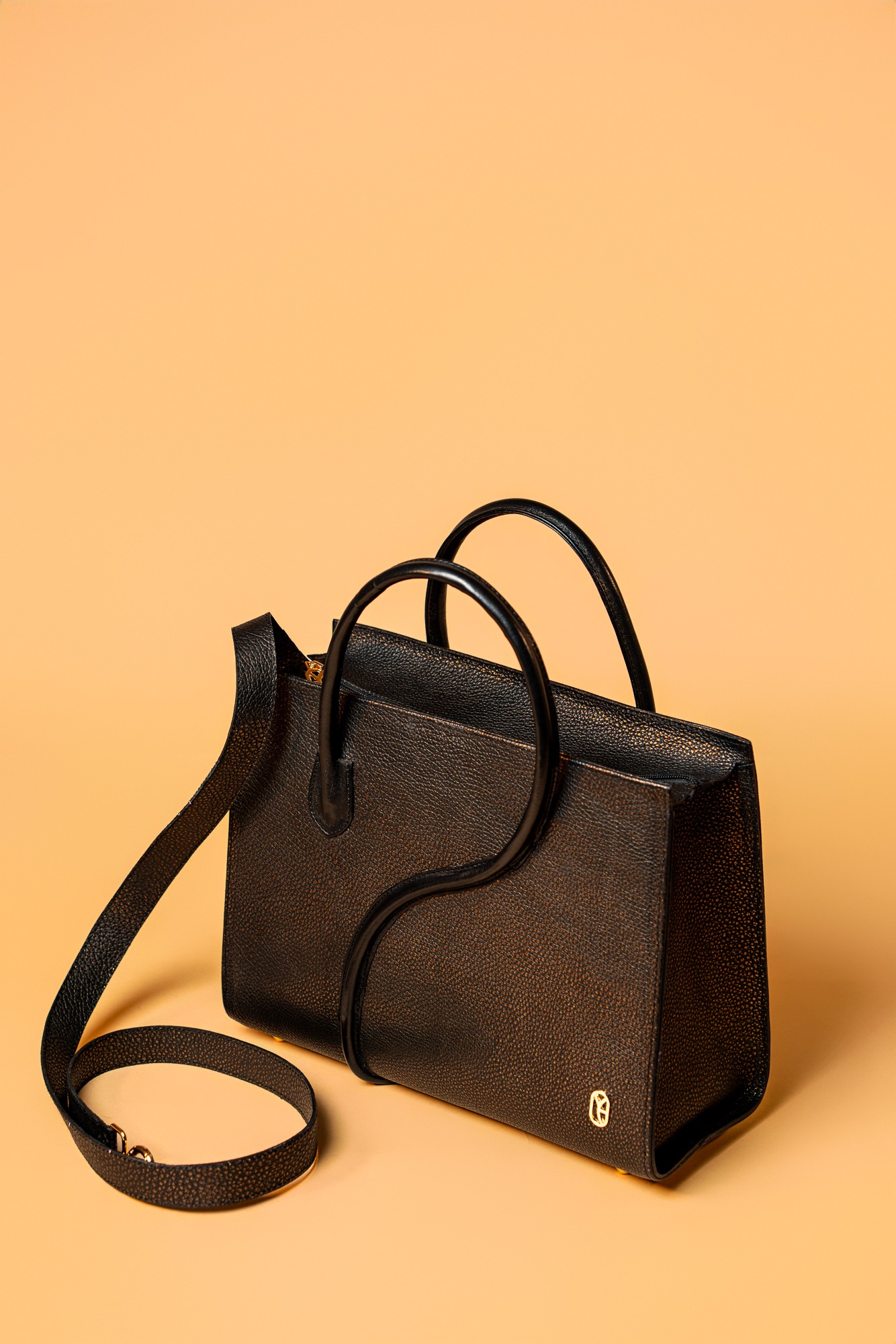 Une couture sinueuse qui traverse le cuir comme un souffle artistique, mêlant équilibre, mouvement et raffinement.