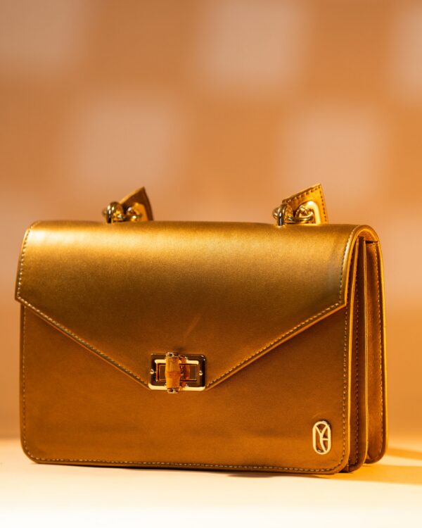 Le Sac à main TAKI mini- Golden Haze incarne une féminité affirmée dans une silhouette architecturale. Compact, raffiné et doté d’un fermoir bambou doré, il passe du quotidien aux soirées avec élégance et aisance.